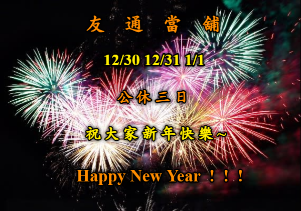 12/30 ,12/31, 1/1我們公休三日